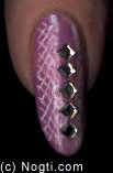 В получившуюся дурочку вставляют металлические подвески, цепочки, гвоздики. Их можно купить в магазинах по нейл-арту, салонах, интернете, а так же приспособить под подвески на ноготь мелкие обычные кулоны, колечки из-под украшений. Колечки зажимаются специальными мини плоскогубцами или пинцетом.